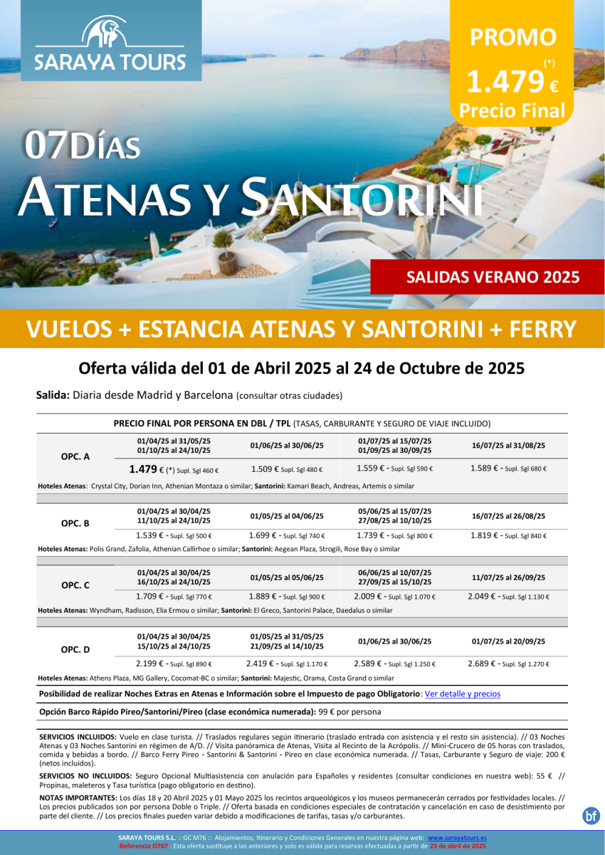 Promo Islas! Atenas y Santorini 7 días: Vuelo, Hotel, Traslados y Visita Atenas Incluida hasta Oct 25